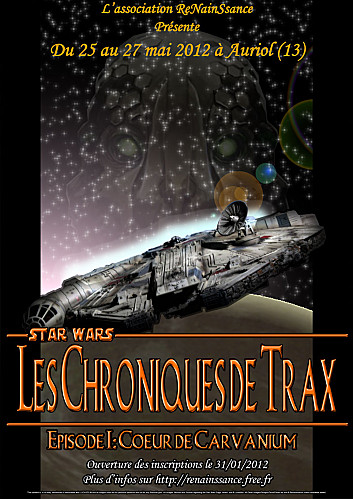 Titre du jeu : Star Wars-Les chroniques de Trax. Episode I : Cœur de Carvanium Association organisatrice : ReNainSsance Date du jeu : Du 25 au 27/05/2012 Durée de jeu : Du 25/05 18h...
